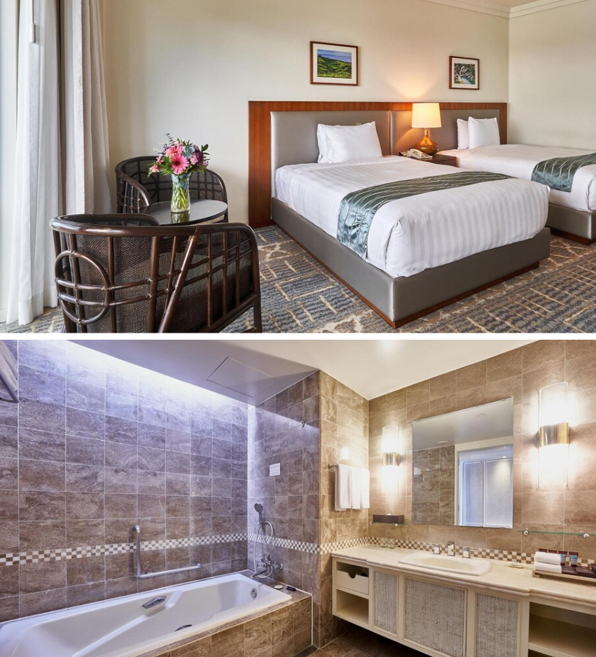 22년 리노베이션을 마친 신축 호텔인 크라운 플라자 리조트 괌. 그래서인지 후기에 "괌에서 가장 깨끗한 호텔"이라는 평가가 많이 보인다. 투몬 베이 중심부에 위치해있고, 괌 국제공항에서 약 3키로미터 정도 떨어져 있다. 그래서 교통은 거의 완벽한 곳이라고 볼 수 있겠다.