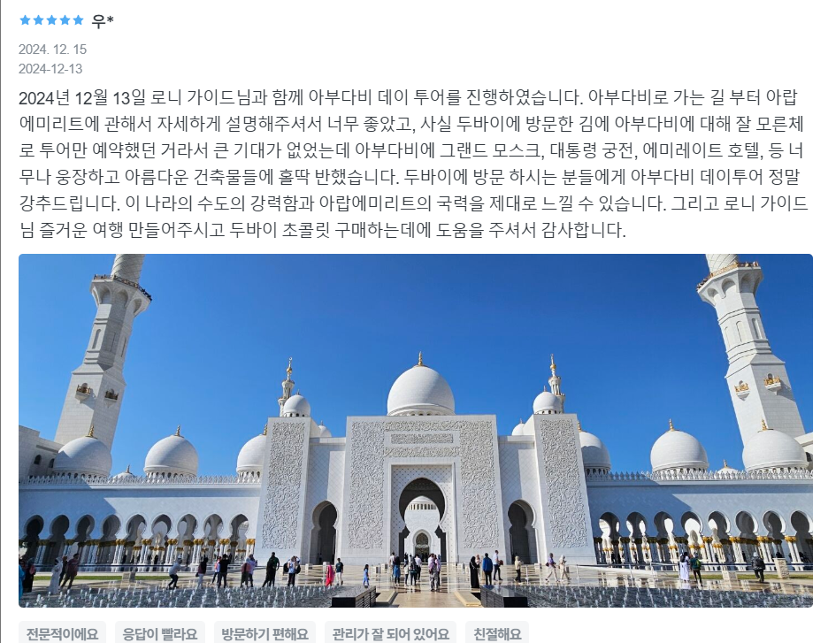 [한국어가이드] 아부다비 시티 투어! [투어시작 07:30 - 18:00 까지]의 후기, 가격을 확인하고, 지금 바로 마이리얼트립에서 예약하세요. 아랍에미리트여행 아부다비여행