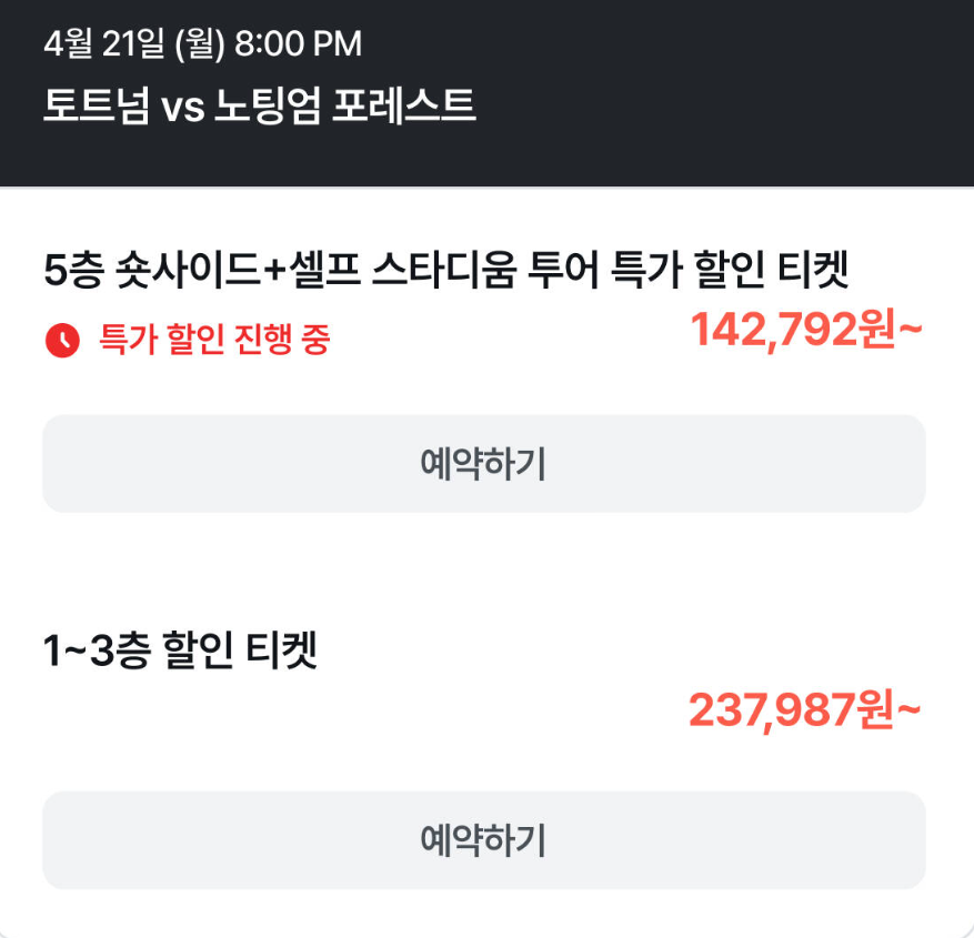 > 손흥민 경기 직관 티켓 구매하기